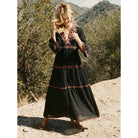 هذه الفستان الأسود الطويل يقدم قصّة انسيابية وياقة على شكل V جذابة. مثالي لمناسبات متنوعة، يجمع بين الراحة والأناقة.