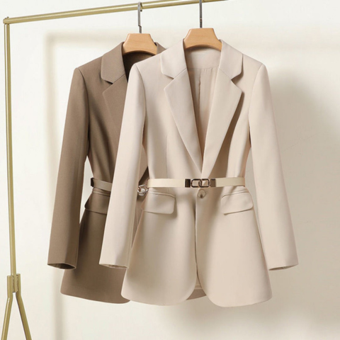 Tento dlouhý blazer zvýrazňuje siluetu díky svému strukturovanému střihu a úzkému pásku. Dodává moderní a rafinovaný nádech všem outfitům, od kanceláře po elegantní večery. Pohodlný a univerzální, oslní každý vzhled s chic a sebevědomým stylem.