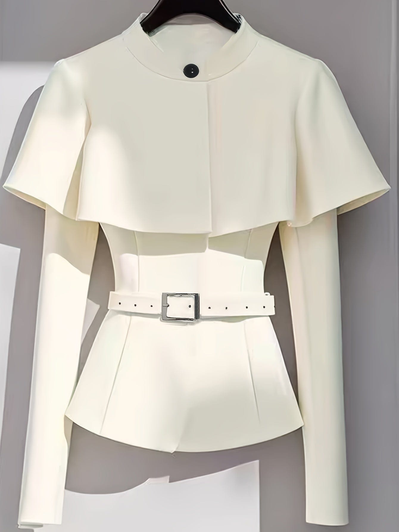 Esta chaqueta capa ceñida realza la silueta con un aire chic y moderno. Su corte estructurado y su cinturón ajustable destacan elegantemente la cintura. Ideal para los días frescos, aporta un toque de refinamiento a todos los outfits.