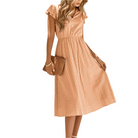 Cette robe d'été légère offre un décolleté en V flatteur et des manches à volants pour une touche romantique. Sa coupe fluide assure un confort optimal tout au long de la journée. Parfaite pour les sorties en ville, les brunchs ou les vacances.