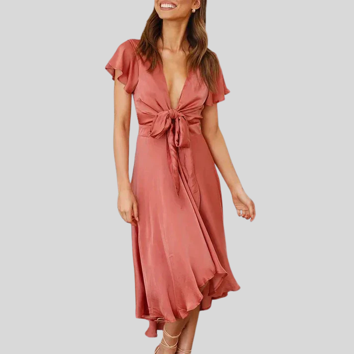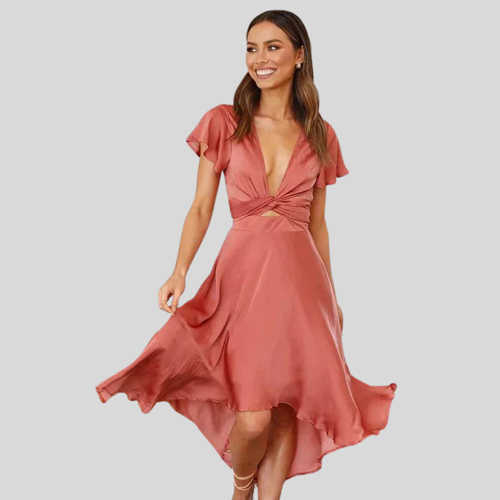Louise | Robe Longue Élégante à Volants et Décolleté Plongeant