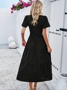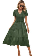 השמלה הבוהמיינית האלגנטית עם השרוולים הקצרים מושלמת למראה גם נינוח וגם אלגנטי. המותן המוקפצת מדגישה את הסילואטה, בעוד שהגזרה הזורמת מבטיחה נוחות אופטימלית. מושלמת לקיץ, ליציאות או לימים שטופי שמש.