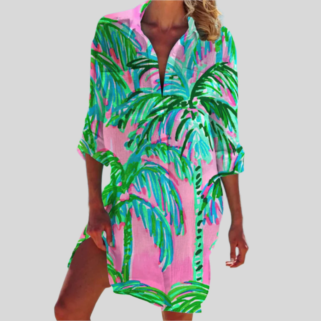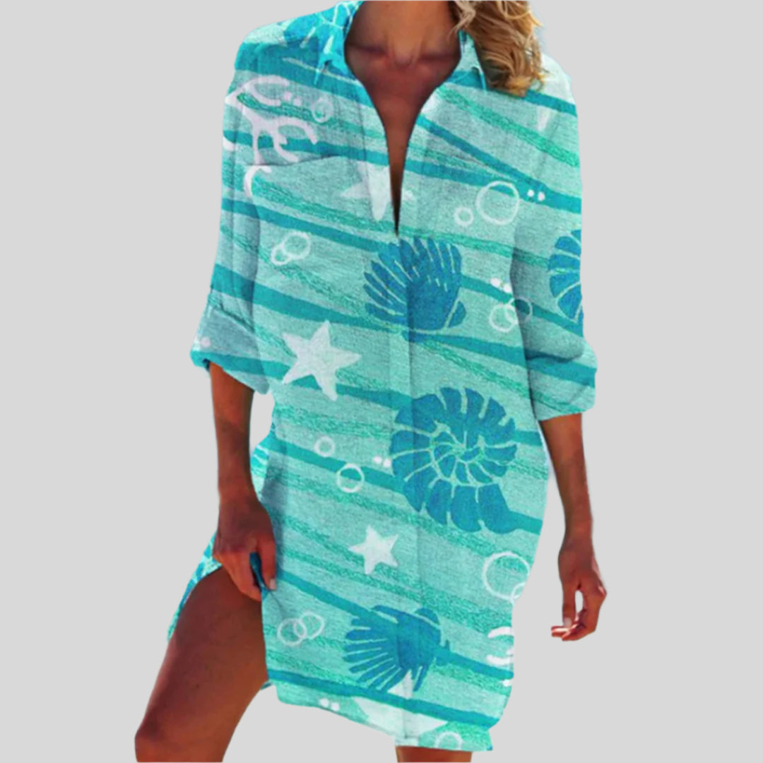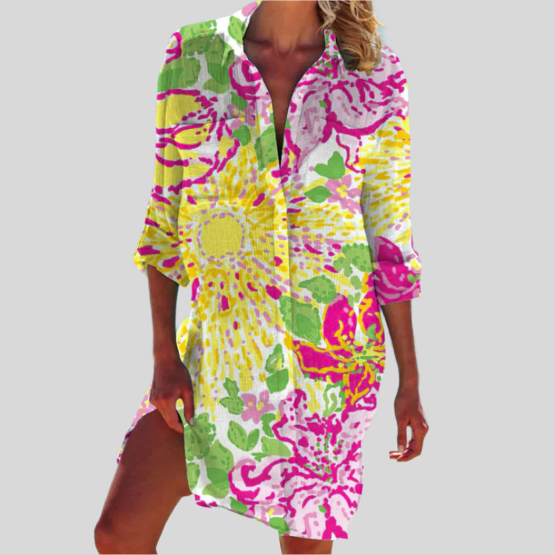אוליביה | שמלת כפתורים קיץ עם שרוולים ארוכים