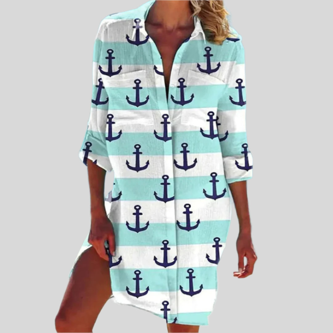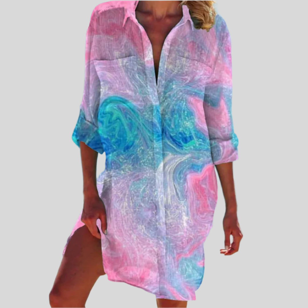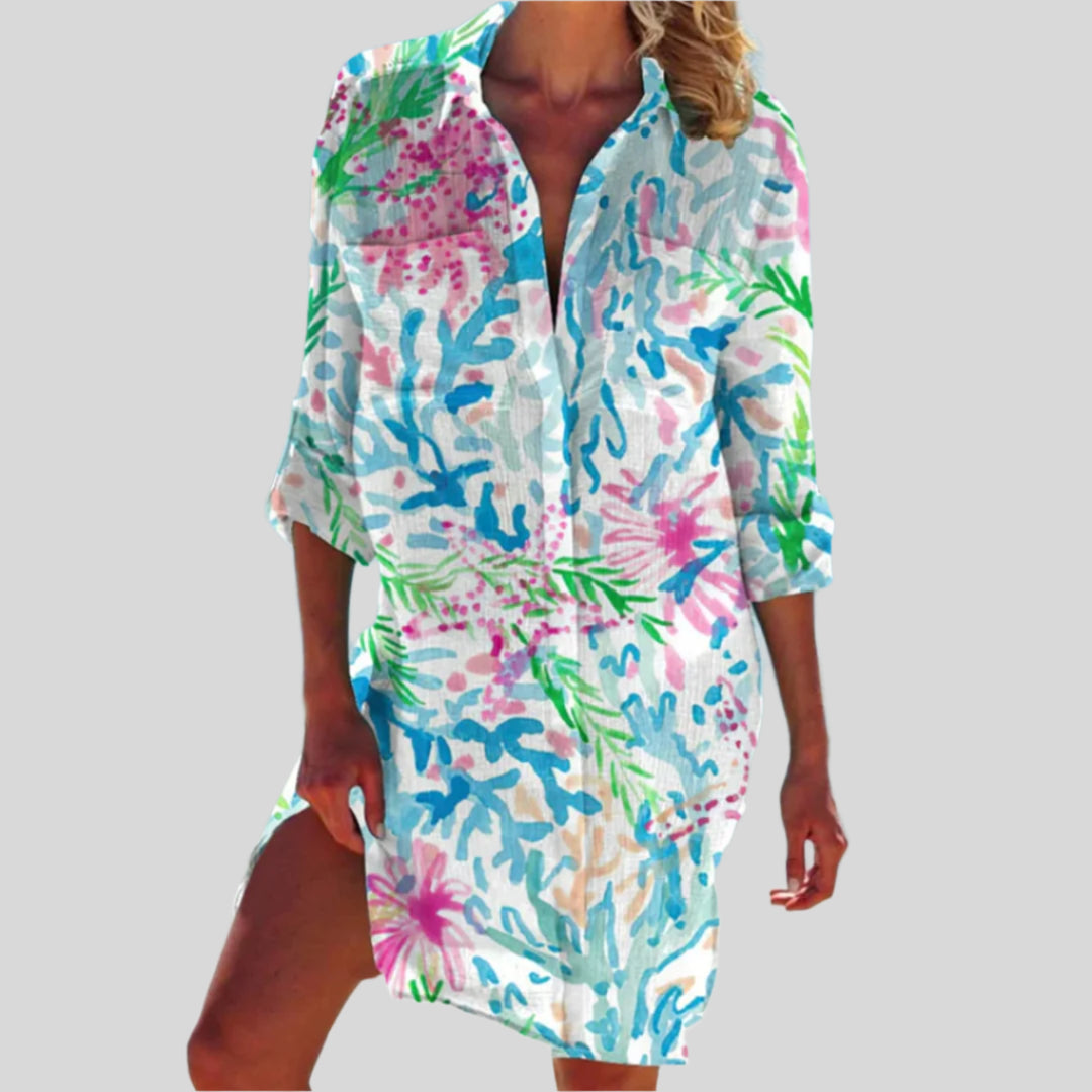 אוליביה | שמלת כפתורים קיץ עם שרוולים ארוכים