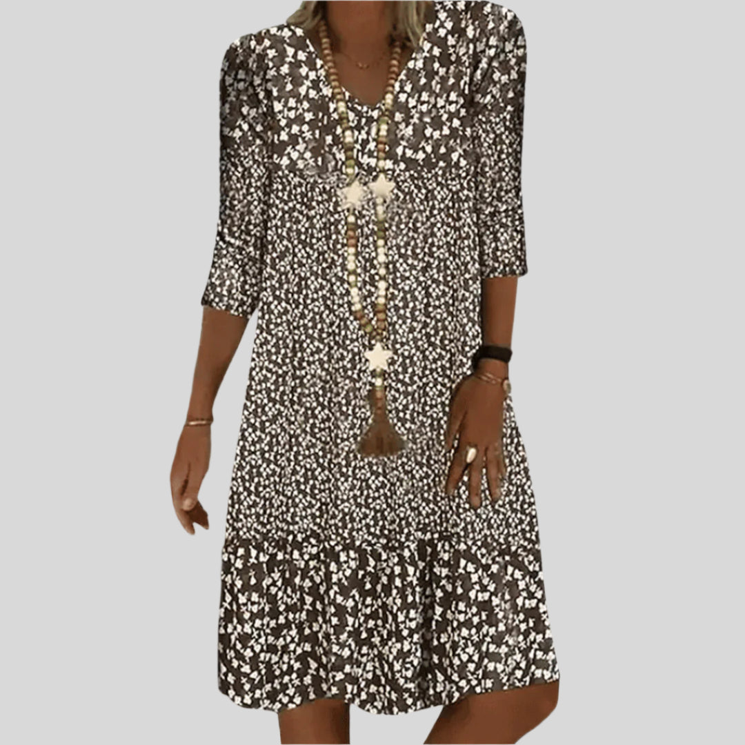 לוריאן | שמלה מודפסת שיק עם שרוולים ארוכים