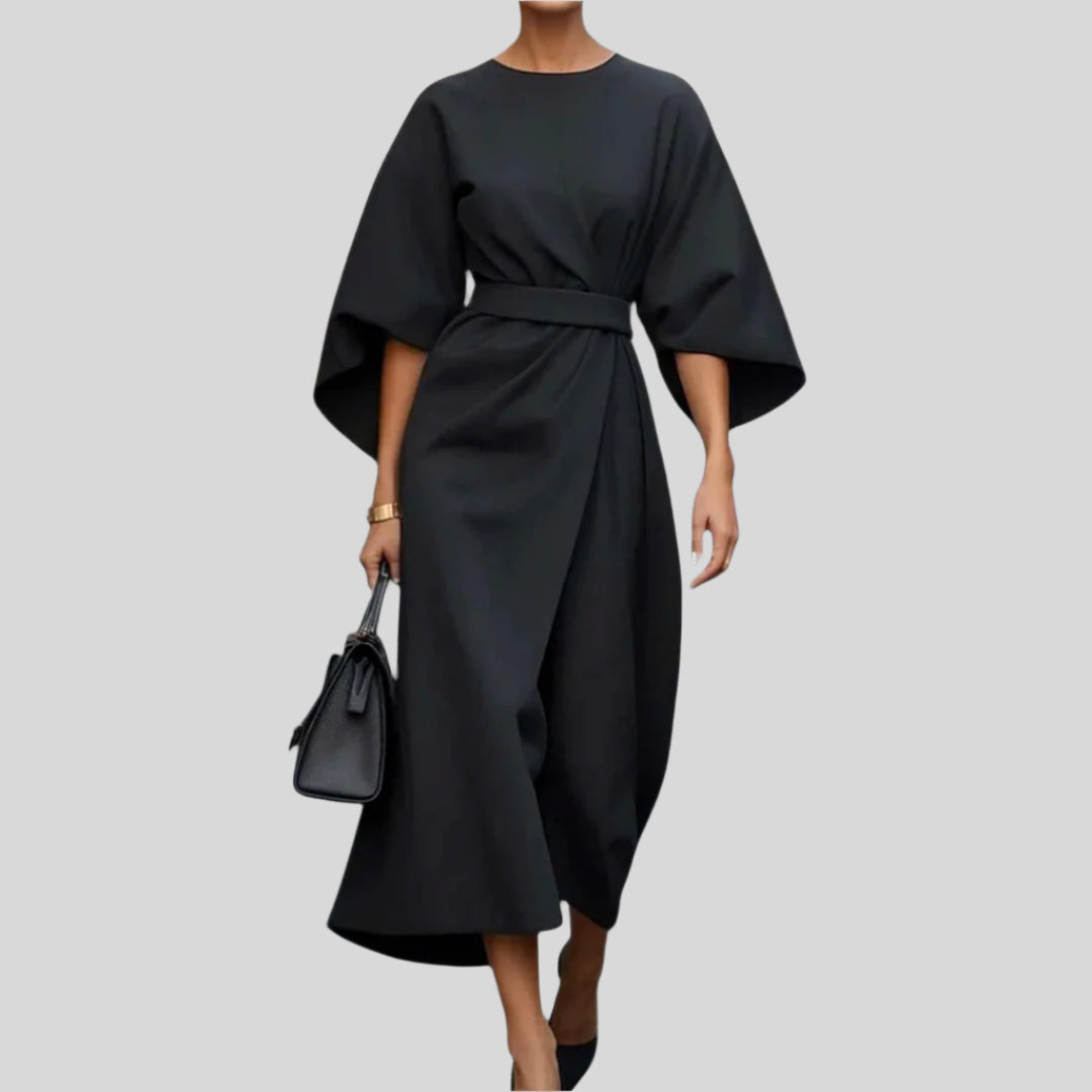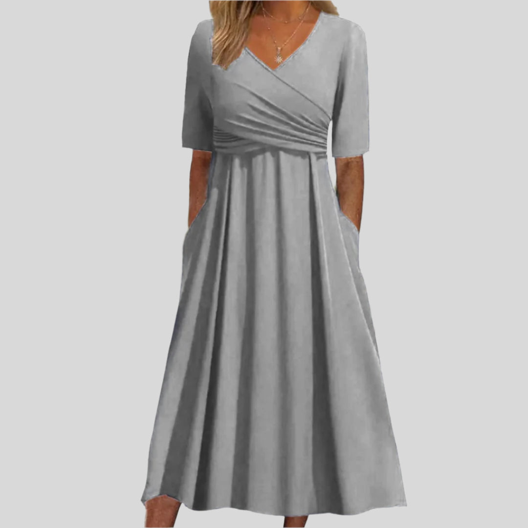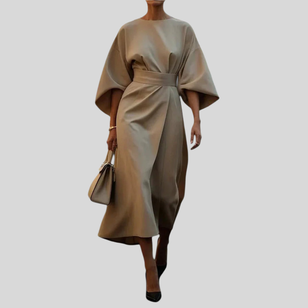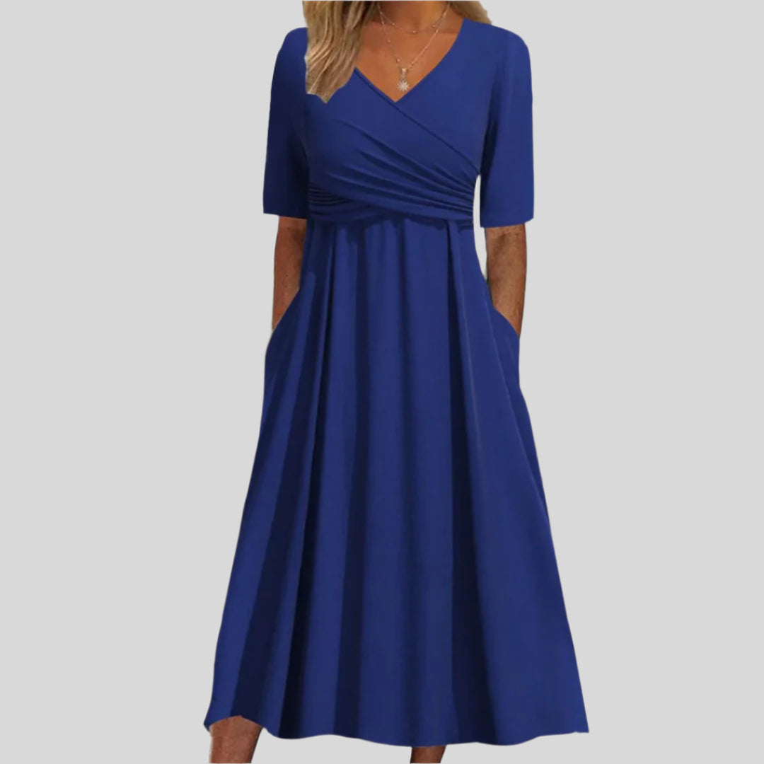 רניה | שמלה יוקרתית עם צווארון V ושרוולים ארוכים