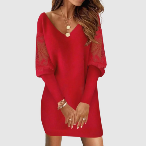 ליאה | שמלה קצרה עם שרוולים ארוכים וחשיפת צוואר בצורת V