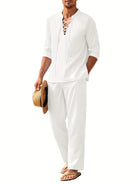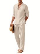 Immergiti nell'eleganza informale con questo insieme bohemien chic composto da una maglietta a maniche lunghe decorata con un laccetto al collo e un pantalone fluido a gamba ampia. Ideale per giornate di sole o per fughe informali, questo set unisce stile e comfort. La sua vestibilità leggera, le tasche pratiche e la vita regolabile lo rendono una scelta tanto estetica quanto funzionale.