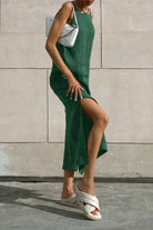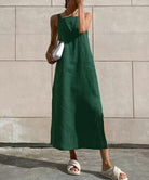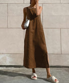 このロングドレスは、ミニマリストなスタイルと自然なシルエットを引き立てる流れるようなドレープで魅了します。シンプルなカットと控えめなサイドスリットが、快適さと洗練さを兼ね備えた完璧なアイテムです。軽やかで着心地が良く、晴れた日やバカンスでのリラックスタイムにも適しています。